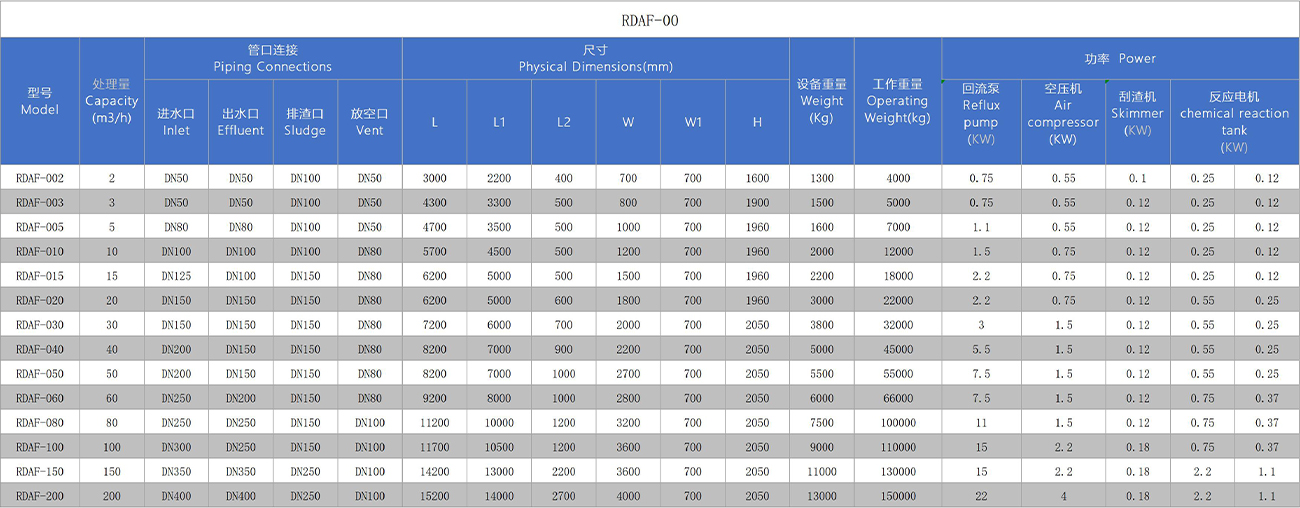 Ošetrený odpad sa považuje za cirkulujúcu vodu cez cirkulujúce čerpadlo a vstupuje do rozpustenej vzduchovej nádrže. Súčasne sa do rozpustenej vzduchovej nádrže pridáva stlačený vzduch a v rozpustenej vzduchovej nádrži sa vykonáva účinné miešanie sóda vody. Po zmiešaní sa rozpustená vzduchová voda obsahujúca vzduch odoslaná do kontaktnej oblasti flotácie vzduchu. Okamžité uvoľňovanie tlaku cez uvoľňovač generuje veľké množstvo mikrobubliniek, ktoré sa rýchlo pripájajú k koagulovanej suspendovanej hmote. Hustota suspendovanej hmoty je postupne menšia ako hustota vody a automaticky sa vznáša na povrch. Voda na spodnej časti zariadenia sa ponáhľa v zhone a vypúšťa sa do plochy čistej vody cez vodné výstupné zariadenie na dne. Časť vody v oblasti čistej vody sa naďalej používa ako cirkulujúca voda pre zariadenie a zvyšok je prepustený do ďalšieho procesu. Spodina plávajúca na povrch je zoškrabaná do bazénu spodiny škrabkou na ďalšie ošetrenie.